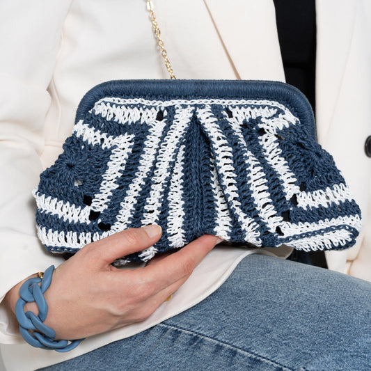 Marine Color Raffia Clutch