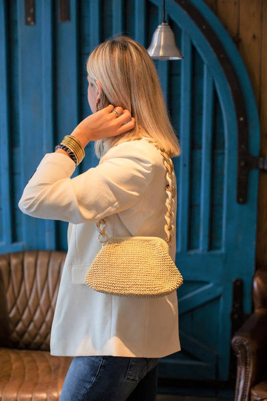 Our straw crochet clutches are summer staples — ideal for beach days, weddings, parties, and sunset dinners.