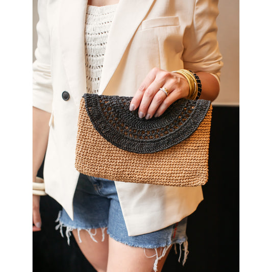 Our straw crochet clutches are summer staples — ideal for beach days, weddings, parties, and sunset dinners.