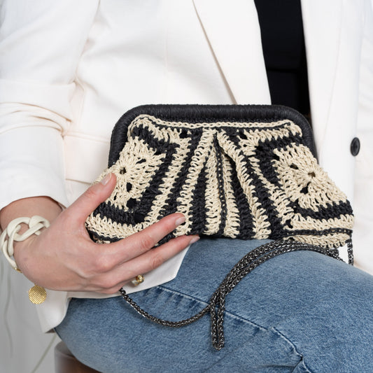 Our straw crochet clutches are summer staples — ideal for beach days, weddings, parties, and sunset dinners.