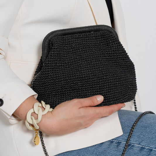 Black Raffia Clutch Bag