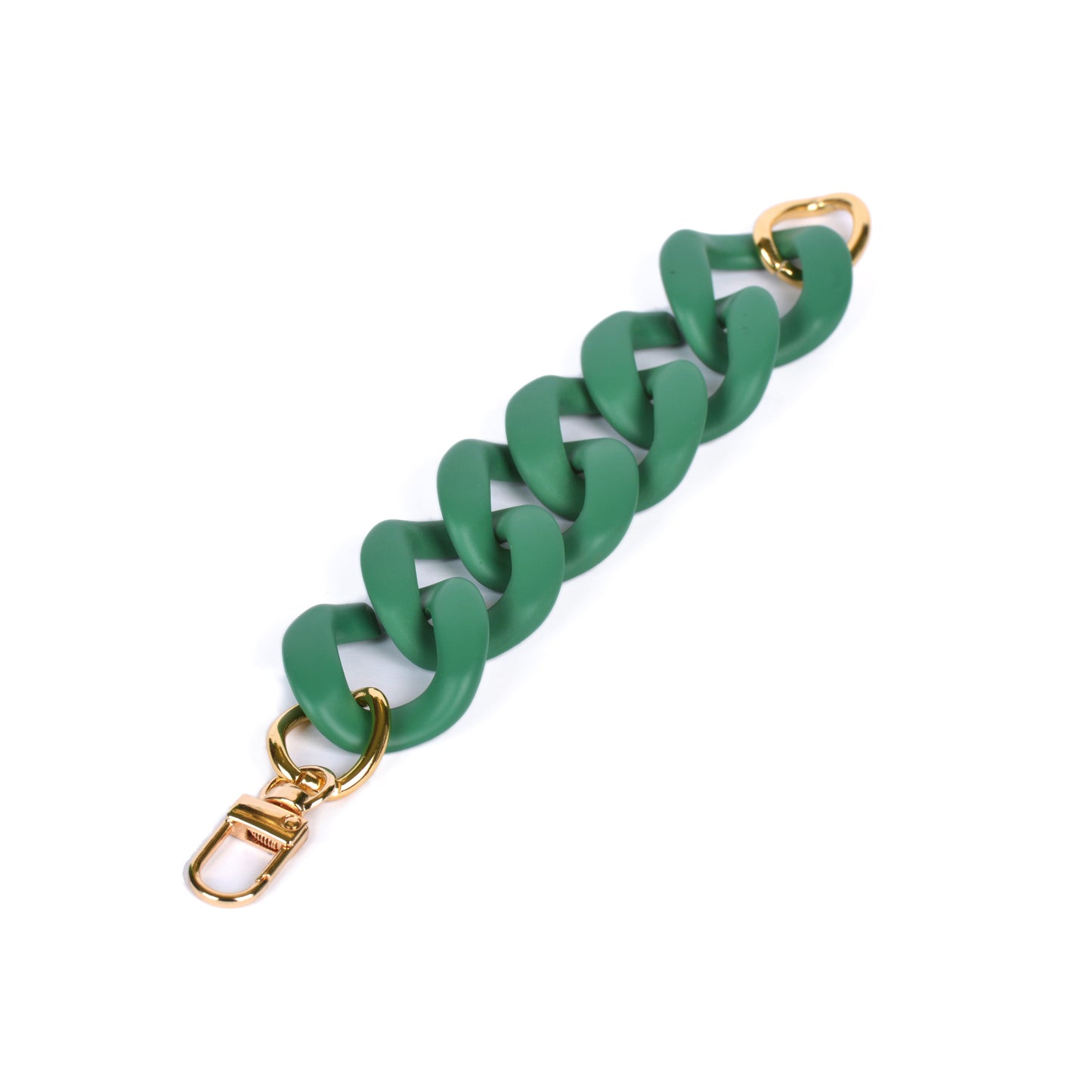- Crafted from premium materials such as acrylic links, gold-plated aluminum, and stainless steel, this piece has a 3 cm width and measures 18 to 20 cm long when clasped. For added versatility, we have included a matching acrylic link or extension chain.