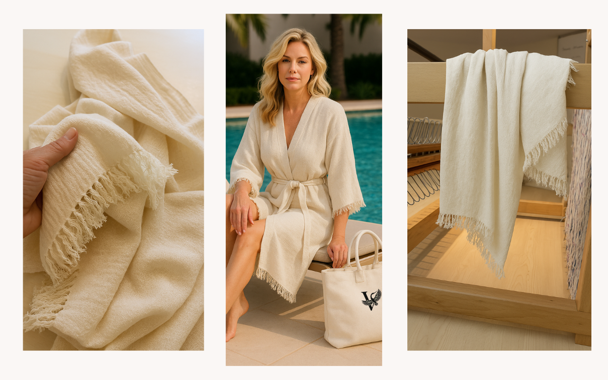 ValentElle’s OEKO-TEX certified muslin kimonos, linen cover-ups, and artisan towels — all...